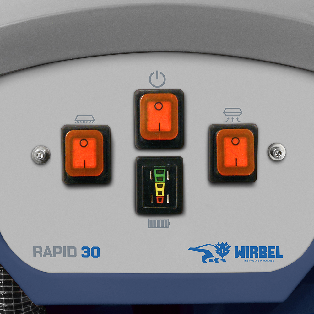 RAPID 30 SM 45 TOUCH ist das neueste Modell der RAPID Familie. Simply Manual: Ein System von Lösungen, das die besten Leistungen beim Waschen und Trocknen mit der extremen Benutzerfreundlichkeit kombiniert: Eine perfekte Mischung von Zweckmäßigkeit und Wirtschaftlichkeit, die die besten Leistungen bei der Verwendung gewährleistet. Modernes und eindrucksvolles Design, das eine Hochleistungs-Scheuersaugmaschine auf die bestmögliche Art darstellt: 30 Liter Fassungsvermögen, maximale Manövrierfähigkeit und ein integriertes Lösungssystem machen aus RAPID 30 den Bezugspunkt in seinem Marktsegment: