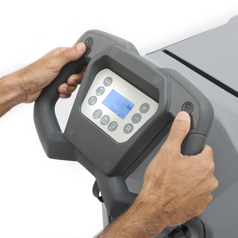 WSD 50 D 60 CHEM ist eine handgeführte Scheuersaugmaschine, die für Reinigungsarbeiten in mittleren bis großen Umgebungen konzipiert ist. Mit einem Fassungsvermögen von 50 Litern, einer Waschbahn von 600 mm und einer Saugbreite von 750 mm bietet sie eine Stundenleistung von 3050 m²/h. Der leistungsstarke, hocheffiziente Saugmotor garantiert eine hervorragende Leistung bei geringem Energieverbrauch, während der ergonomische Griff und das praktische Touch System mit integrierten Doppelsensoren eine präzise Steuerung der Maschine ermöglichen und jede Arbeitssitzung einfacher und komfortabler machen. Die WSD 50 D 60 wurde entwickelt, um alle täglichen Wartungsarbeiten zu vereinfachen: Der Auffangbehälter hat eine große Öffnung für eine einfache Inspektion und Reinigung, der leicht herausnehmbare Schmutzbehälter ermöglicht eine schnelle Entsorgung von Rückständen und die Bürstenentriegelung ist automatisch. Zu den wichtigsten Merkmalen der Maschine gehören die Silent-Mode-Programme, die sich dank des reduzierten Geräuschpegels ideal für die Reinigung in sensiblen Umgebungen eignen, das ECO-System, das den Verbrauch optimiert, ohne die Waschleistung zu beeinträchtigen ( ), und die Ready-To-Go-Funktion, mit der sich alle Hauptfunktionen schnell und sofort starten und verwalten lassen. Das Chemical Mixing System, das System zur Dosierung von Waschmitteln, vervollständigt die Standardausstattung. Der WSD 50 D 60 ist in drei Konfigurationen erhältlich: eine Basisversion und zwei Komplettversionen, BC CHEM und BC Lithium CHEM, komplett mit Batterien und Ladegerät. Die BC-Version bietet eine Autonomie von ca. 3 Stunden, während die BC Lithium CHEM-Version eine noch längere Laufzeit bietet, mit der Möglichkeit des schnellen Aufladens auch während kurzer Pausen, für die beste operative Flexibilität.